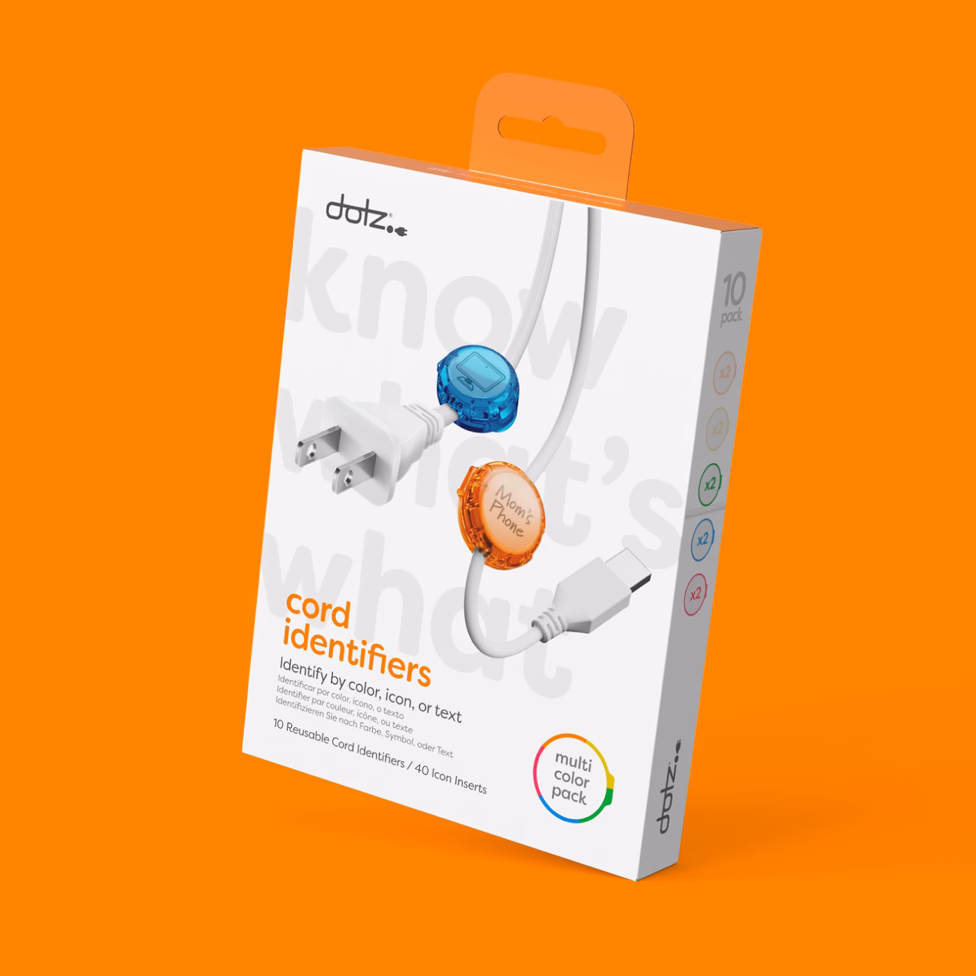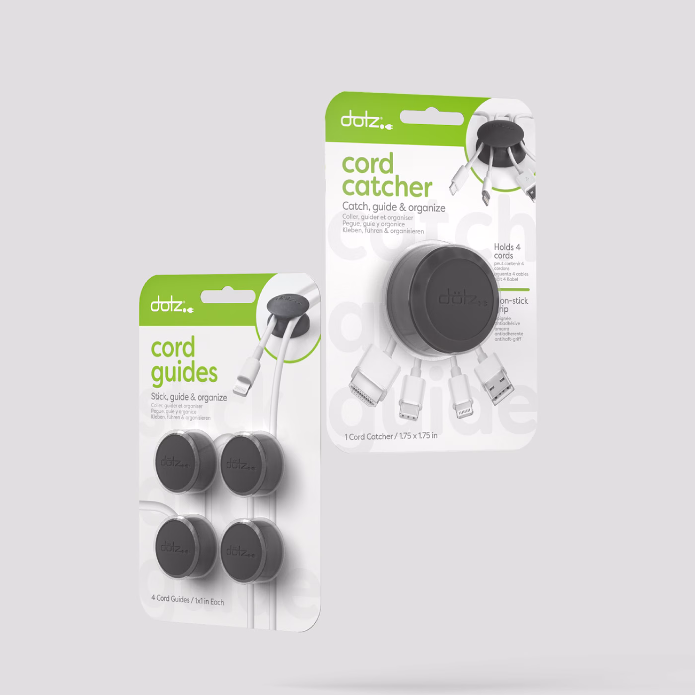 With the rebrand, we also refreshed the Dotz packaging system. The goal was to simplify communication, modernize what already worked, and preserve the categorical color structure that originally defined the brand. When Dotz first launched, cable management had no true home in retail, making placement difficult. The products could sit in almost any department, electronics, organization, hardware, impulse, or seasonal.